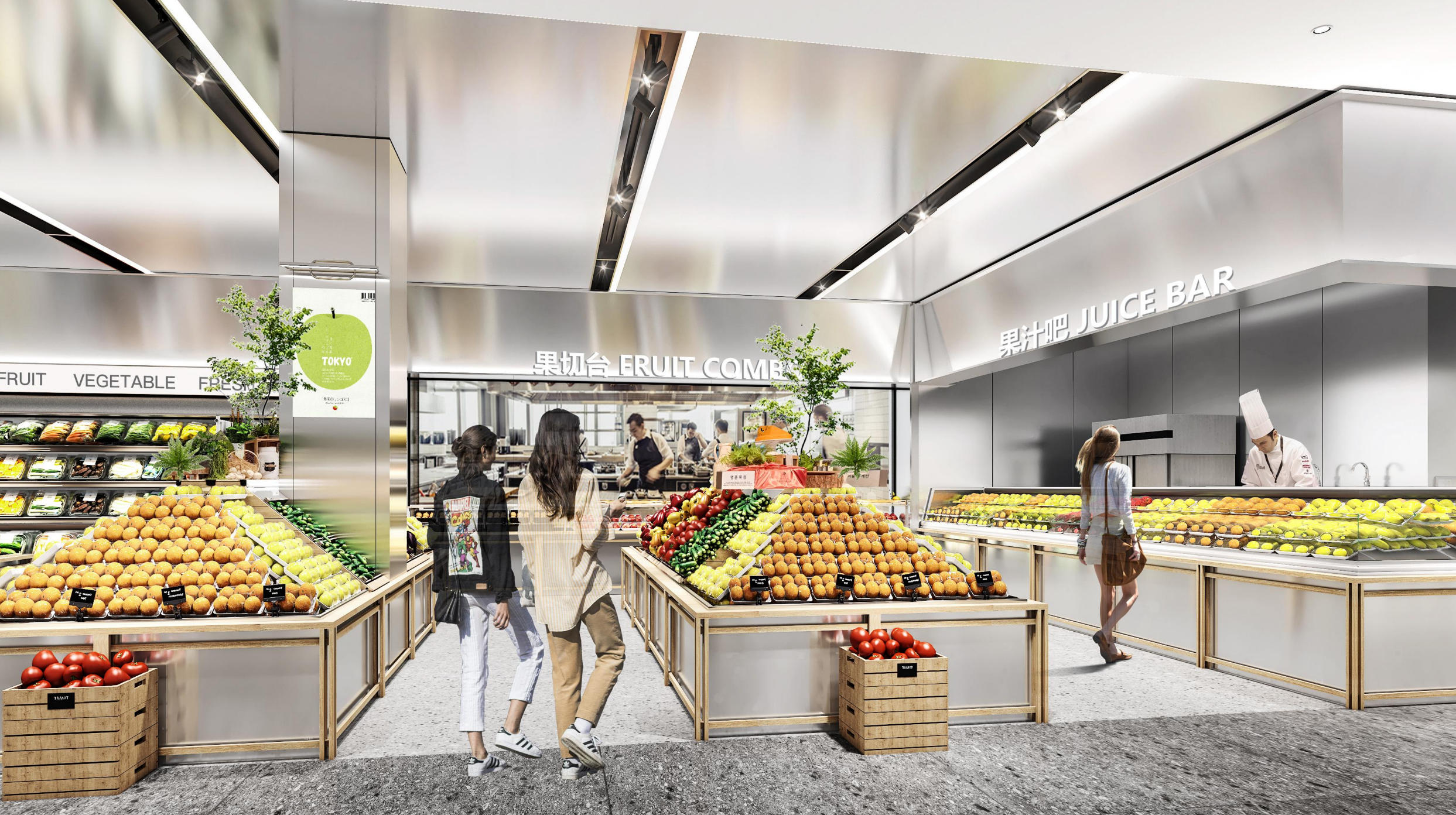 "Simple Beauty" as keynote, "freshness" as core: Kaiping’s multiculture blends into fresh food space with aluminum and nature, a bright, clean, open-welcoming space. Restrained materials, precise lighting, smooth circulation make products visual focus. Customers get a trustworthy, visual, vibrant shopping experience comfortably, reflecting Simple Beauty & freshness.