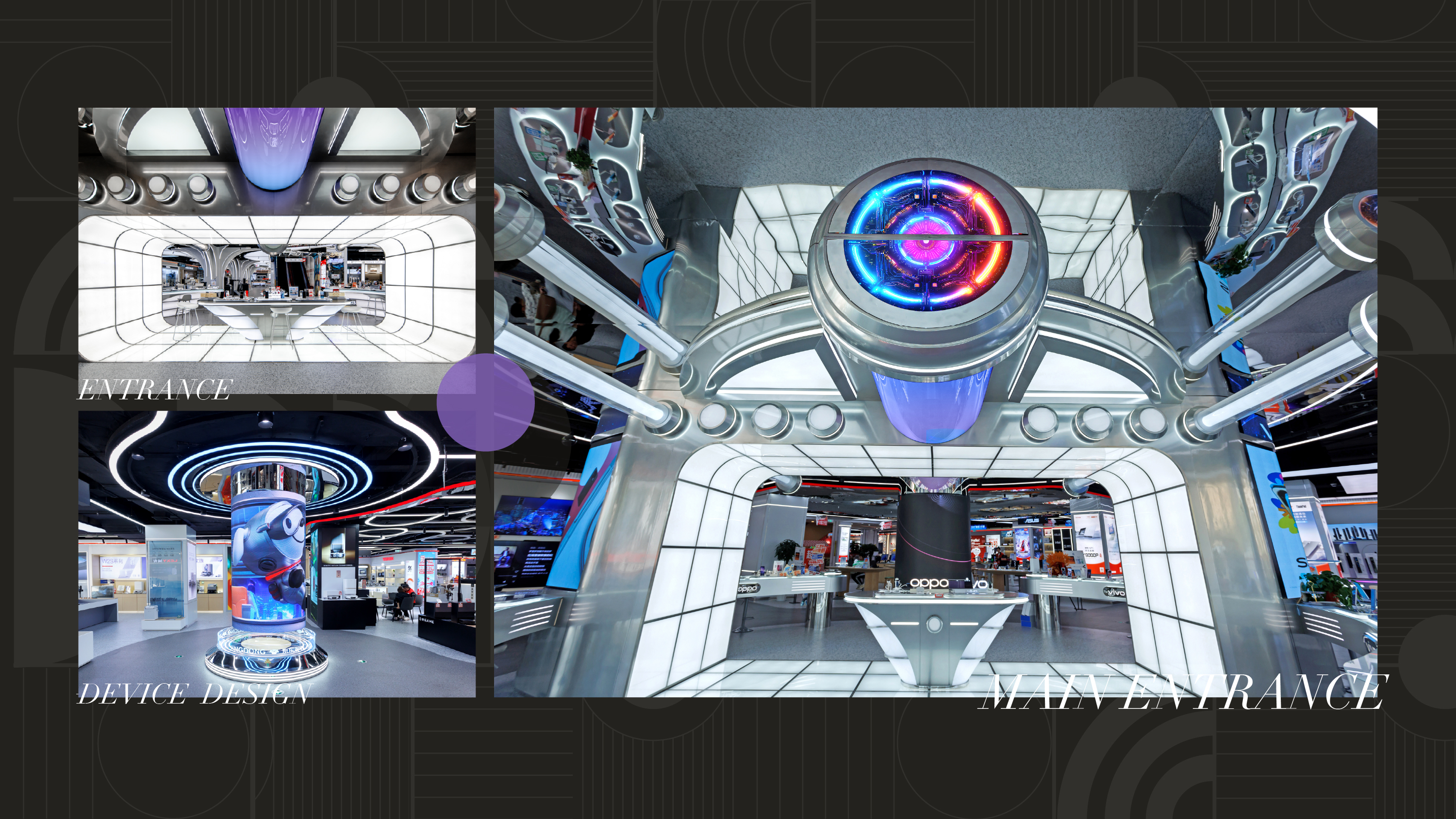 Spatial innovation centered on the "Cosmic Starship" concept reversely optimizes the positional relationship between the vestibule and the main entrance, streamlines traffic flow, and maximizes space utilization. With technological exploration as the core theme, 3D large screens, transparent displays, cube screens, and other advanced visual devices are deployed both indoors and outdoors. By aligning cutting-edge future technology with scenarios and products one-to-one, a new paradigm for tech-dr